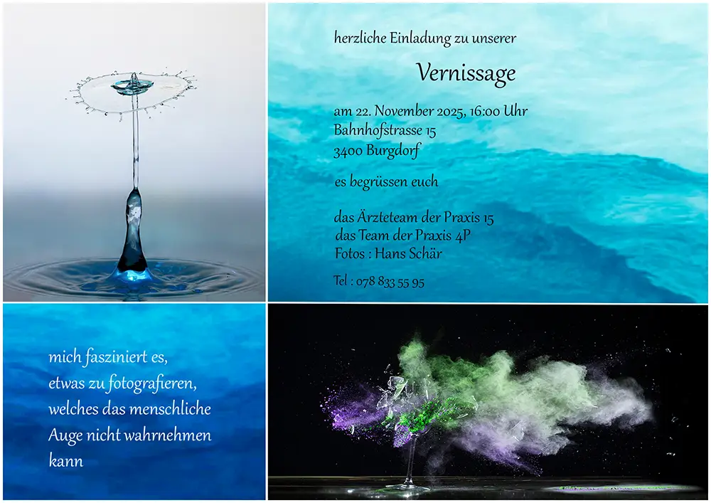Herzliche Einladung zu unserer Vernissage am 22.11.2025, 16:00 hier in der Praxis 15.